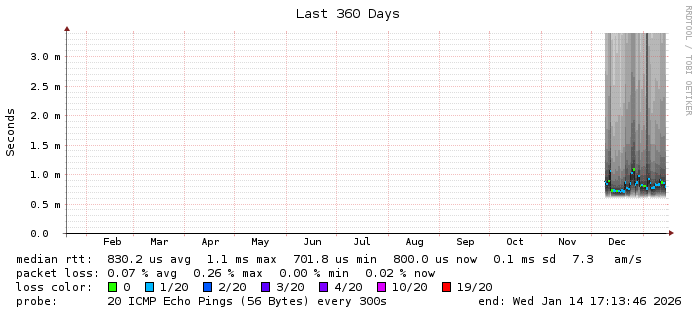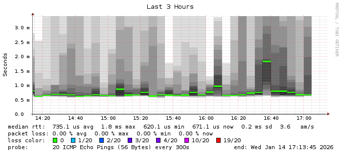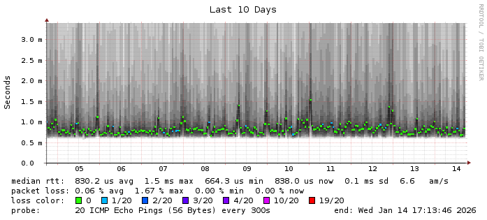 Running on SmokePing-2.6.8 by Tobi Oetiker and Niko Tyni